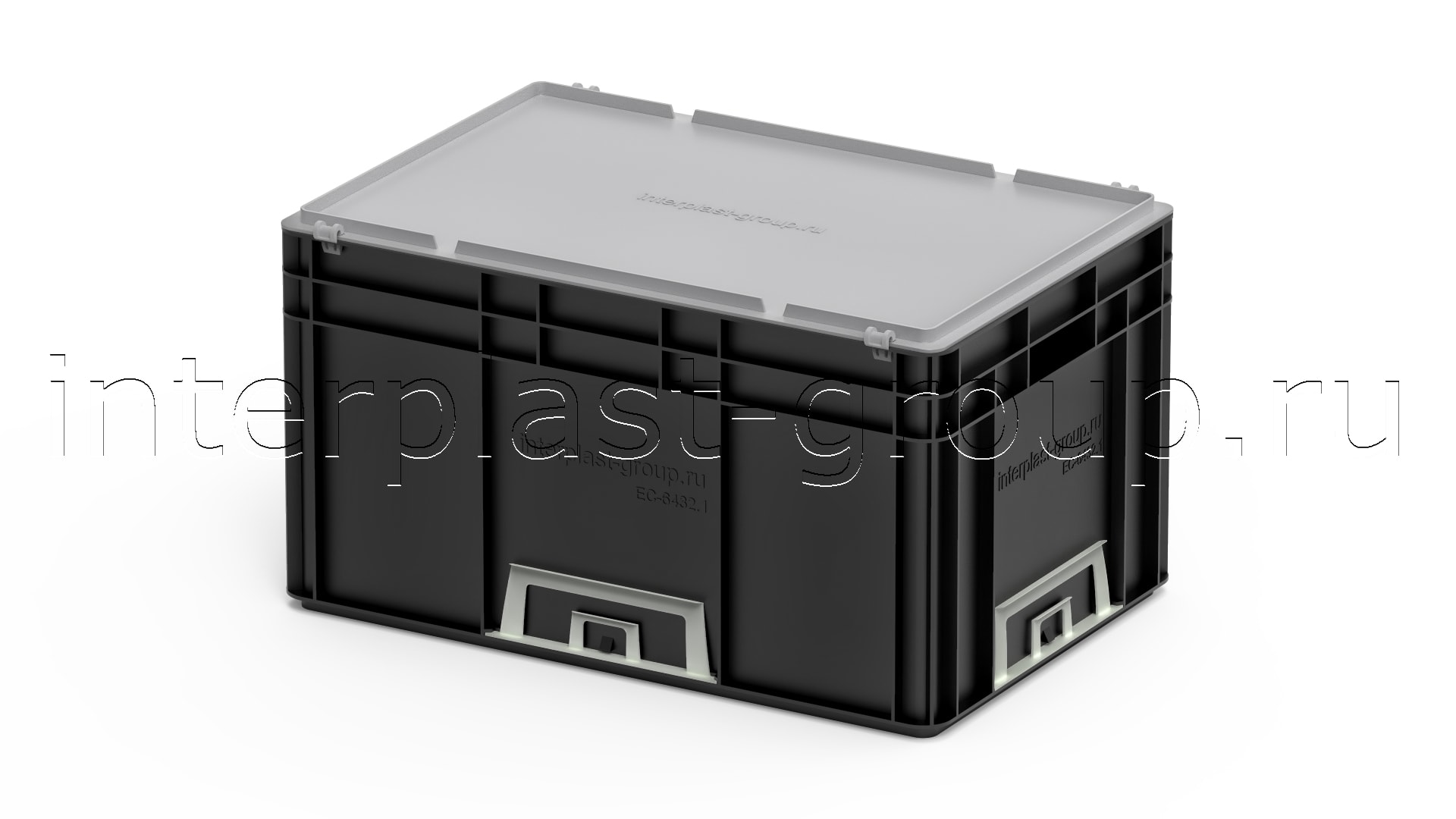 Евроконтейнер открытые ручки/сплошное дно (черный), 600x400x320 мм