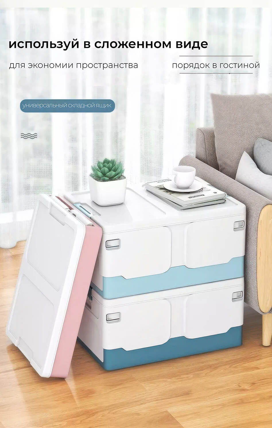 Складной ящик 480х360х240 мм, бело-голубой – стильное и практичное решение для хранения