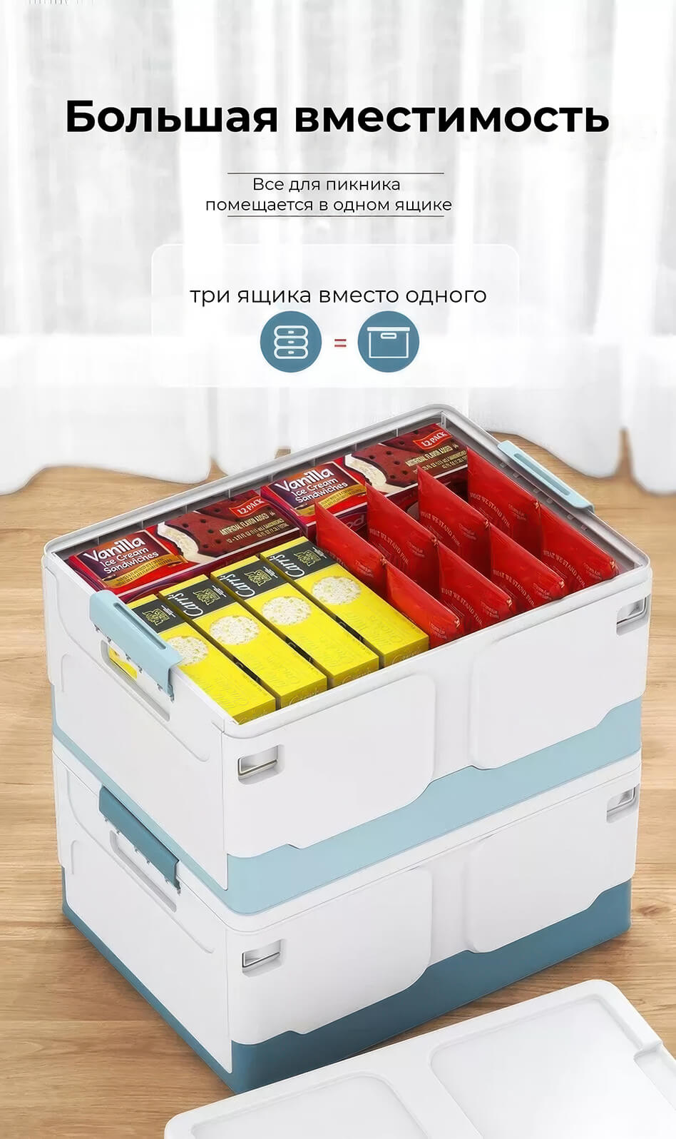 Создайте порядок и уют с этим складным ящиком, который идеально подойдет для хранения одежды, игрушек, документов, мелочей и бытовых принадлежностей. Пластиковый контейнер выполнен в сочетании белого и голубого цветов, что добавляет ощущение свежести и легкости в интерьер. Пластиковая коробка с крышкой защищает вещи от пыли и влаги, а прочная конструкция гарантирует долговечность. Благодаря складной конструкции ящик пластиковый легко складывается, экономя место, когда не используется. Удобные ручки обеспечивают комфортную переноску. Купите пластиковый ящик для вещей прямо сейчас и наслаждайтесь удобством и порядком в своем доме!