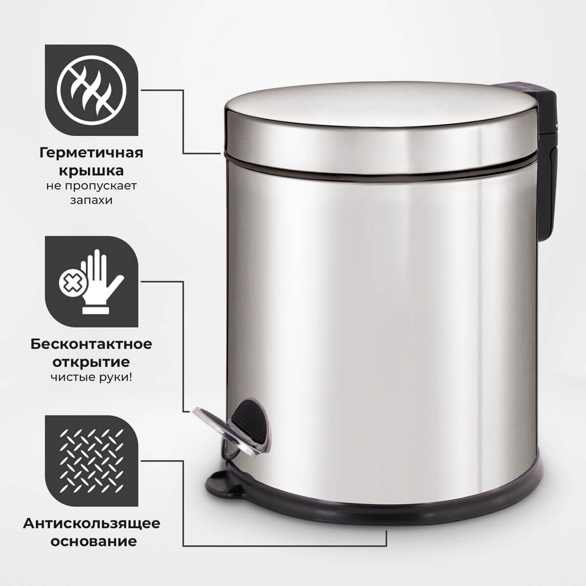 Ведро-контейнер для мусора урна с педалью LAIMA Classic Plus, 5 л, зеркальное в Магадане