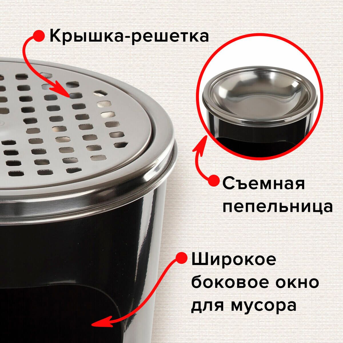 Её вместительные 18 литров позволяют урне справляться с обилием мусора, что особенно важно для мест с высокой проходимостью. Пепельница с крышкой обеспечивает безопасное использование, предотвращая попадание горящих окурков и пепла внутрь.
